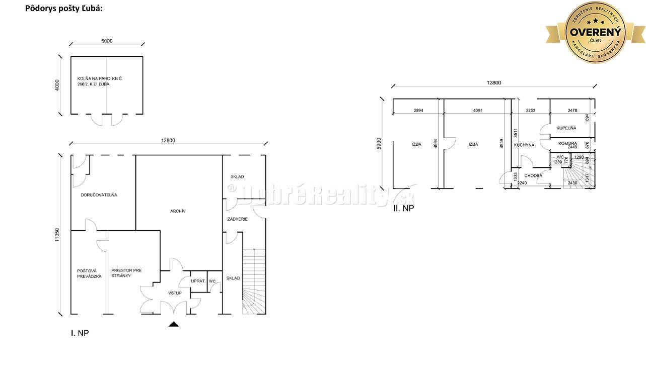 Dobré Reality ponúkajú na predaj samostatne stojacu budovu pošty v obci Ľubá so služobným bytom, dvorom, technickými prípojkami a pozemkami o výmere 885 m². Nehnuteľnosť sa nachádza pri rodinných domoch, v pokojnom prostredí s dobrou...