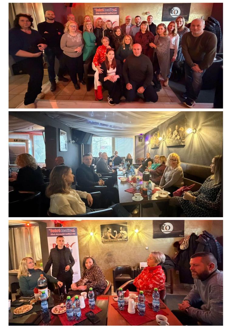 Koncoročné posedenie realitných maklérov našej spoločnosti Dobré reality sa už stalo tradíciou a ani tento rok to nebolo inak. Akciu sme uskutočnili dňa 12.12.2019 v hoteli Belassi v Bojniciach. Naši realitní makléri si vypočuli zhodnotenie tohtoročných výsledkov, plány na rok 2020 a boli im predstavené aktivity, ktoré podporujú zviditeľňovanie realitných maklérov Dobrých Realít na webe a sociálnych sieťach