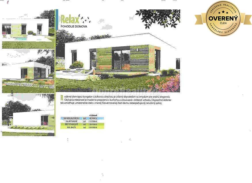 Realitná kancelária Dobré reality spol. s r. o. v spolupráci so stavebnou firmou ponúka výstavbu drevodomu Relax. Plocha: úžitková 81,13m2, zastavaná 96m2, pozemku 500m2.Stav objektu: vo výstavbe. Cena 124 990 € Dom Relax Vám môžeme postaviť...